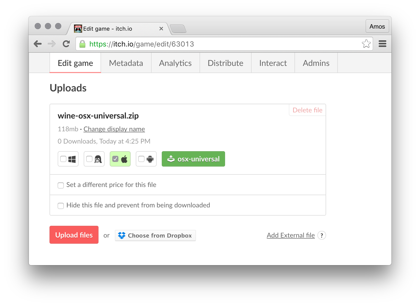 Pushing to a new channel will make a corresponding file appear on your game's page:
